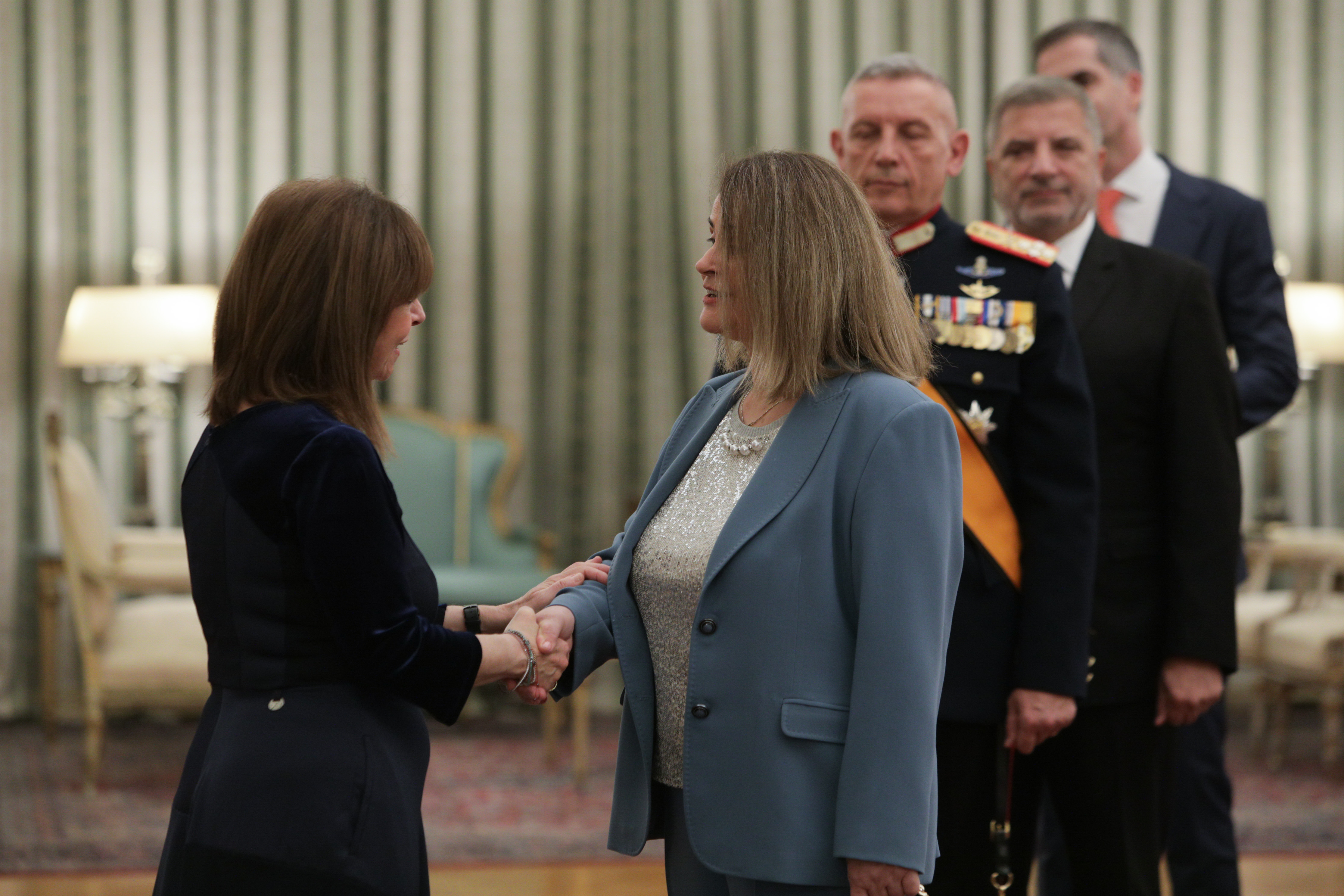 ΠΡΟΣΕΛΕΥΣΗ ΤΗΣ ΠΡΟΕΔΡΟΥ ΤΟΥ ΝΣΚ, ΕΥΓΕΝΙΑΣ Ε. ΒΕΛΩΝΗ ΣΤΟ ΠΡΟΕΔΡΙΚΟ ΜΕΓΑΡΟ ΓΙΑ ΥΠΟΒΟΛΗ ΕΥΧΩΝ ΣΤΗΝ Α.Ε. ΠΡΟΕΔΡΟ ΤΗΣ ΔΗΜΟΚΡΑΤΙΑΣ ΓΙΑ ΤΟ ΝΕΟ ΕΤΟΣ